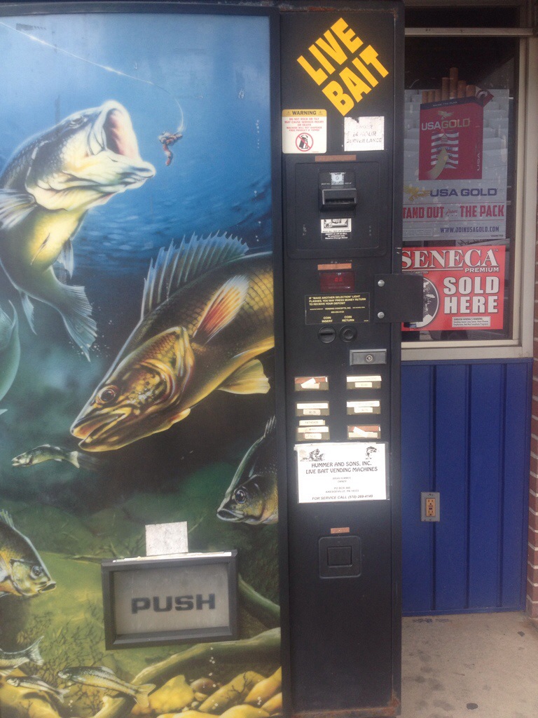 Afterwards, I was still hungry, so I got some eggs too. We walked around town a bit. They had some strange things, like fishing bait vending machines.